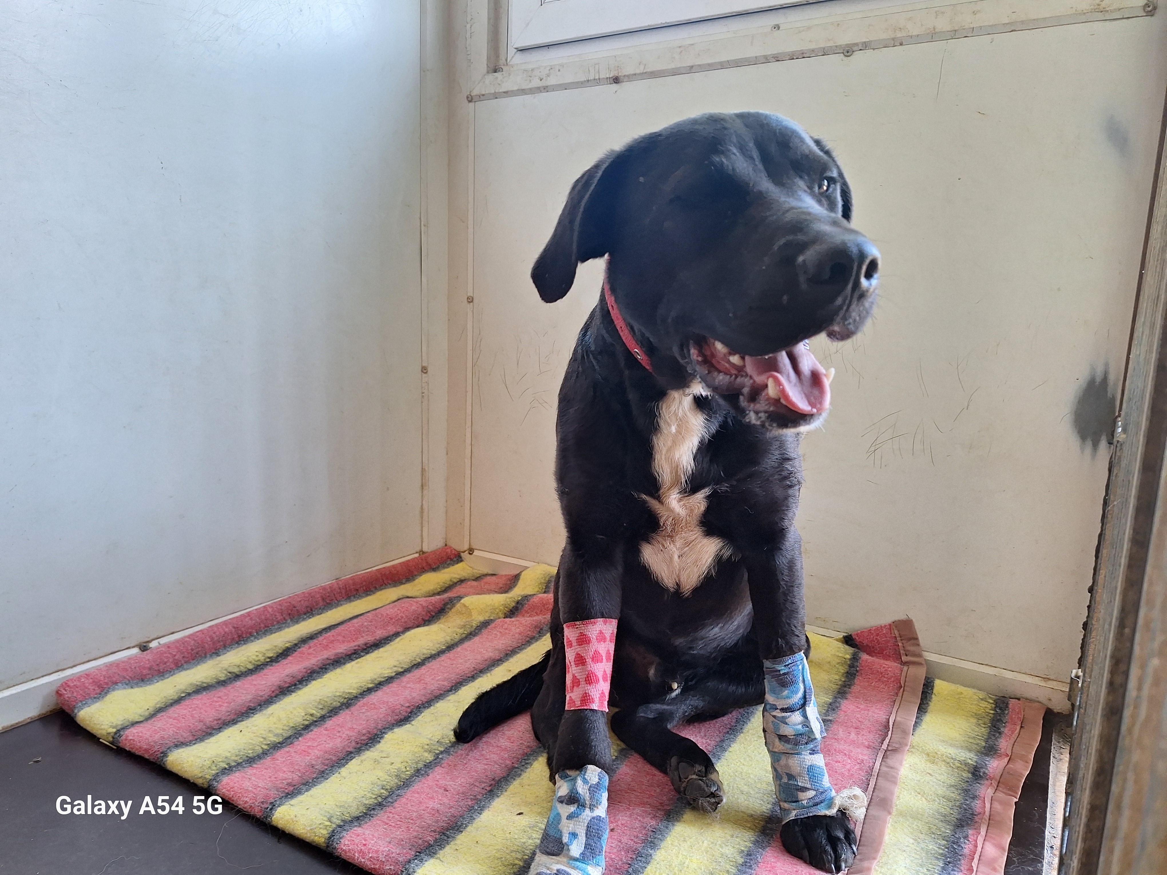 Od 08/05/2025 pies przebywał w lecznicy weterynaryjnej. Został odrobaczony, zaczipowany i zaszczepiony przeciwko wściekliźnie. Pies podczas przeciskania sie przez kraty poranił sobie kończyny. Rany zostały opracowne i zeszyte. Pies w dniu 13/05/2025 został przywieziony i zabezpieczony w schronisku w Orzechowcach.
