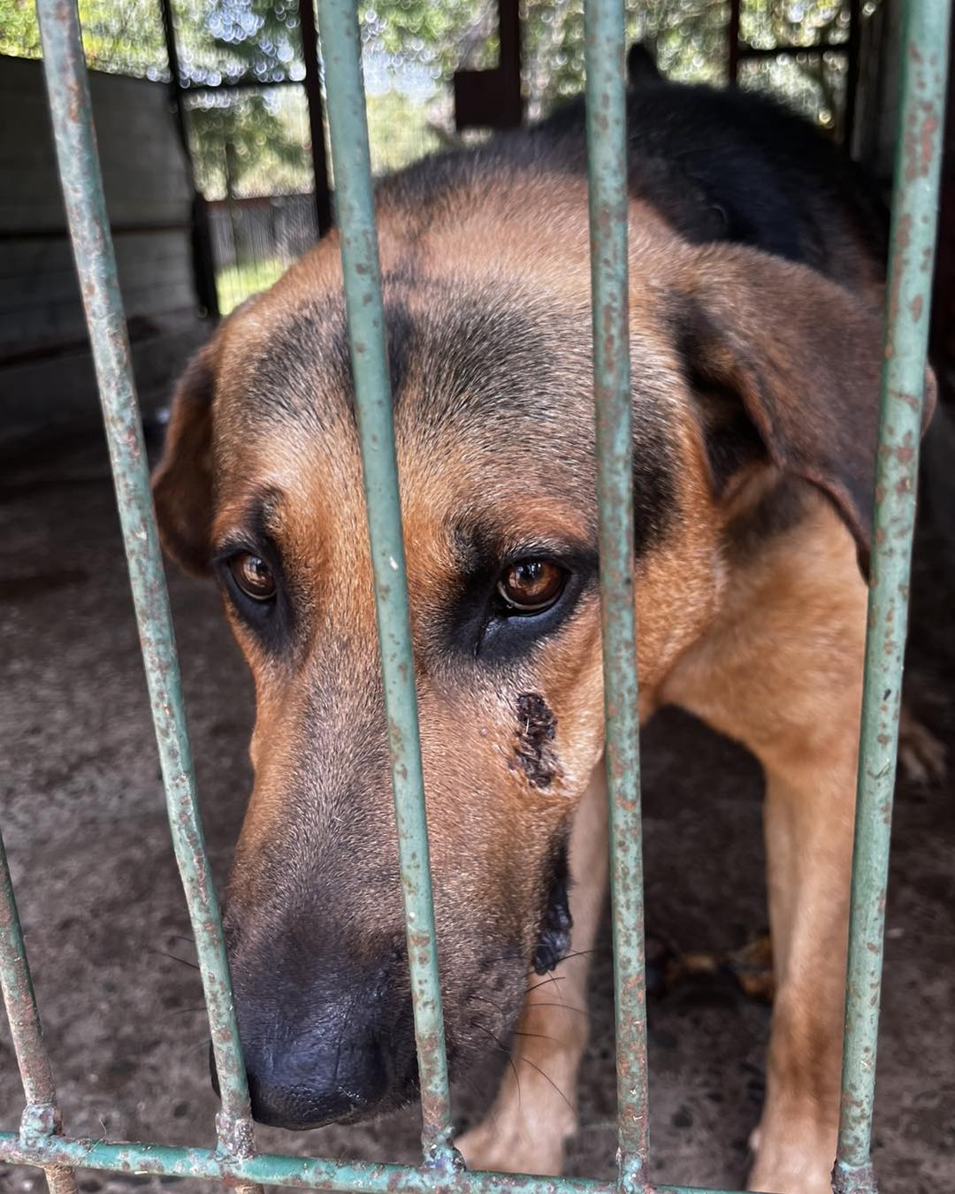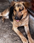 Przywiązany łańcuchem do bramy Schroniska.