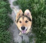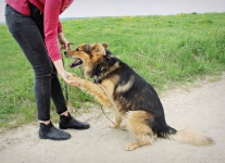 Rebrow ma około 1,5 roku i jak na każdego młodego psa przystało ma dużo energii i chęci do poznawania świata.