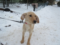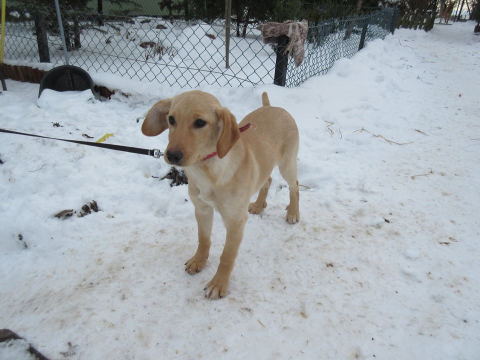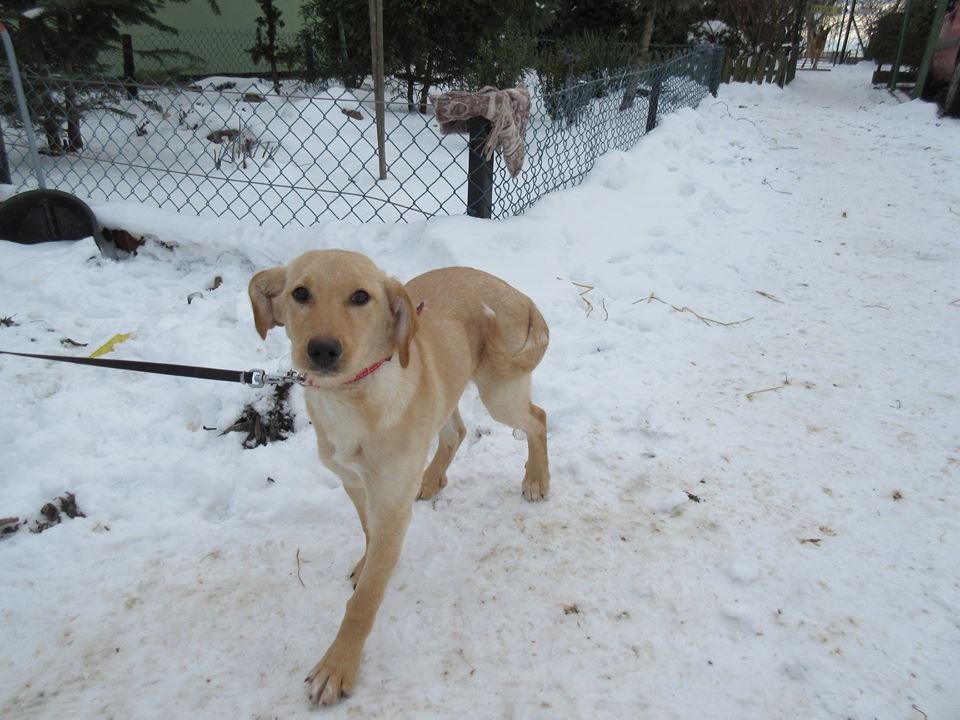 Młodziutka suczka została porzucona pod schroniskiem. Znaleziono ją w zaspie, zmarzniętą i przestraszoną.